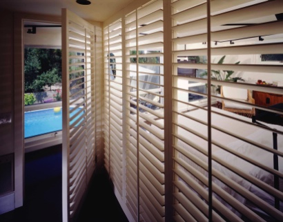My client decided he wanted his bedroom to be level with his pool in a space below the main part of the house. Some excavation was necessary in order to build the study, the dressing room, the bedroom, and a new bathroom enclosed by levered panels. The open design created an airy summer bedroom and a great place for privacy.